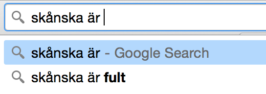 Skåningar och skånska förknippas inte med mycket positivt vid en sökning på Google. ”fult”, ”rasister”, ”dryga”